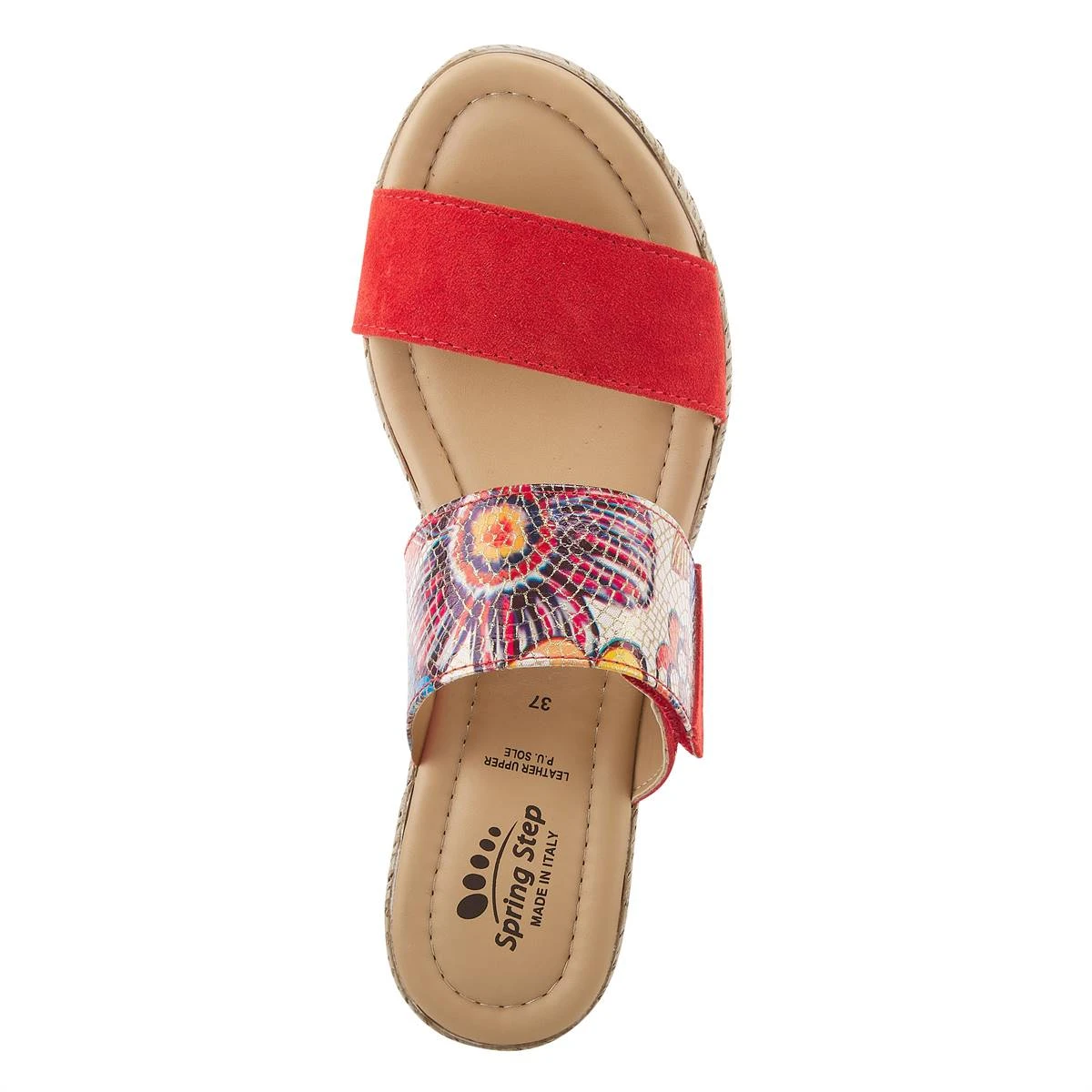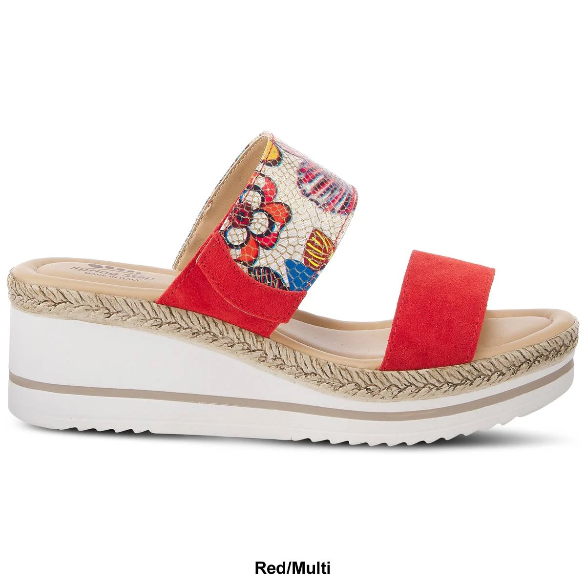 These European-inspired Womens Spring Step Laveta Slide Sandals are super fun and trendy! They feature a beautiful stain glass-like top strap on a wedge and platform comfort sole.