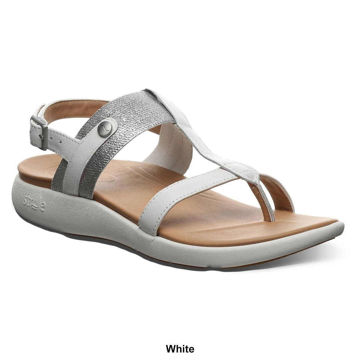 Make a scene with these Womens Strole Breeze strappy thong sandals. Combining metallic uppers with beautiful accents gives this caged sandal a look unlike anything else. Feel secure with adjustable strapping, non-slip EVA outsoles, and revolutionary SoftStride technology.