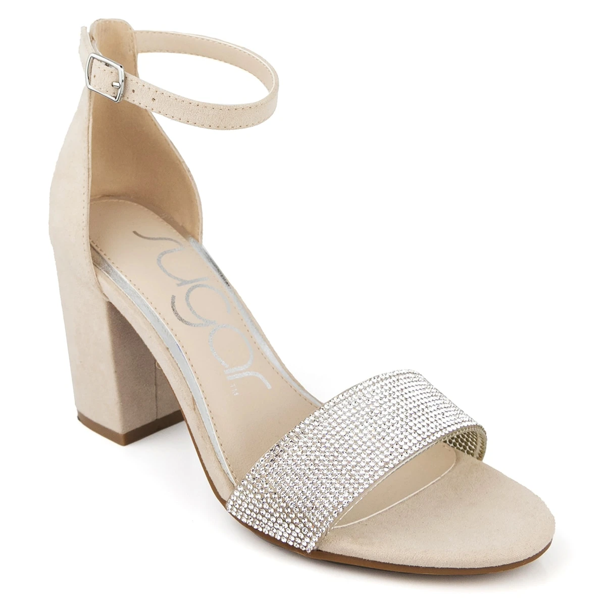 A great choice for work, girl’s night, or dinner dates, the Womens Sugar Machelene block heel sandals instantly elevate any outfit. These slingback sandals include a buckle ankle strap, block heel, microsuede upper, a rhinestone embellished band across the toes, and a memory foam footbed.