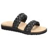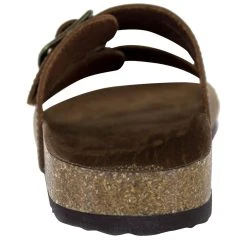 The Womens White Mountain Helga slide sandals showcase a leather upper with a synthetic outsole. As close to walking on sunshine as you can possibly get in this molded suedette footbed. This ultimate summer style features a genuine leather upper and a contoured footbed for a comfortable fit with 2 adjustable buckles and a contrasting textured bottom.