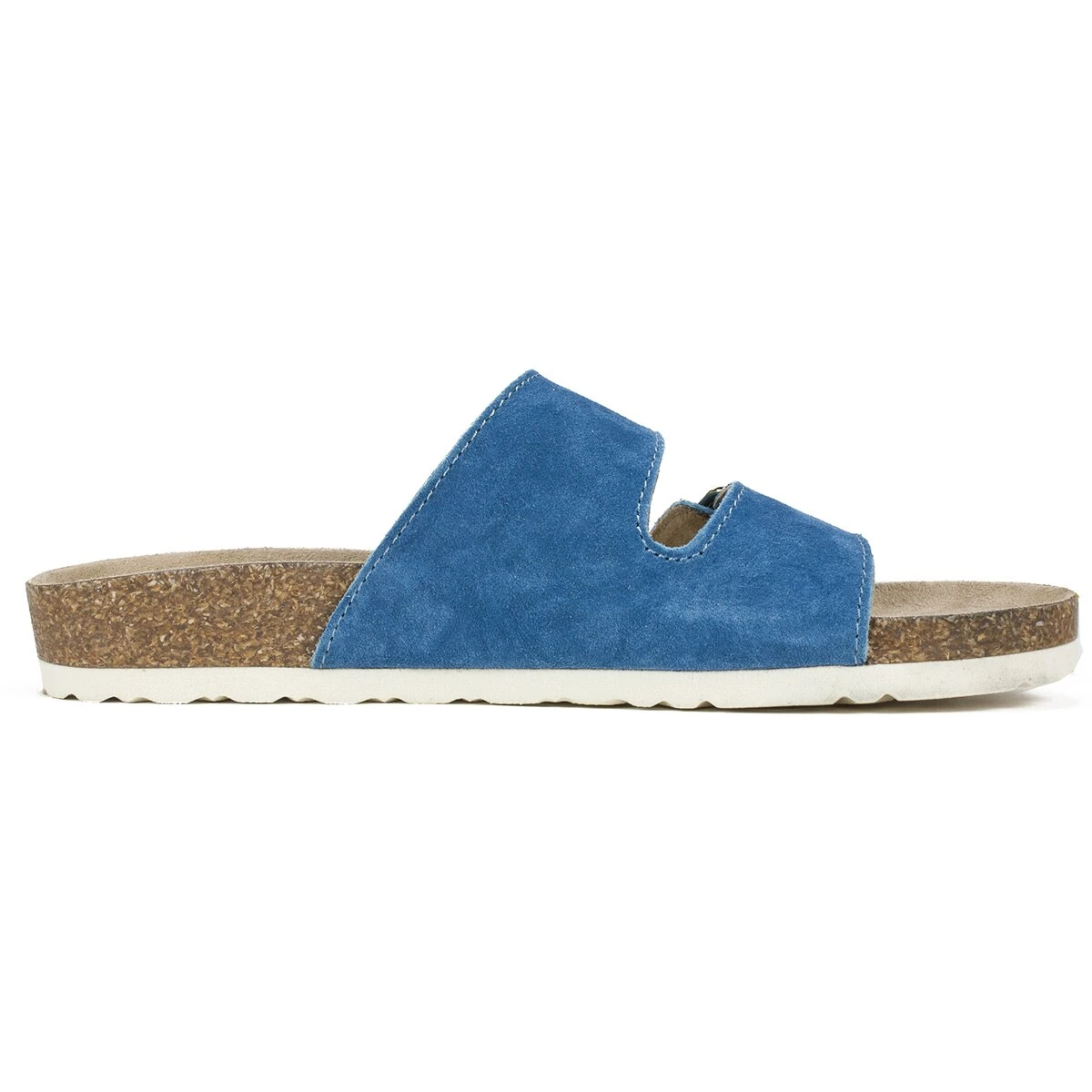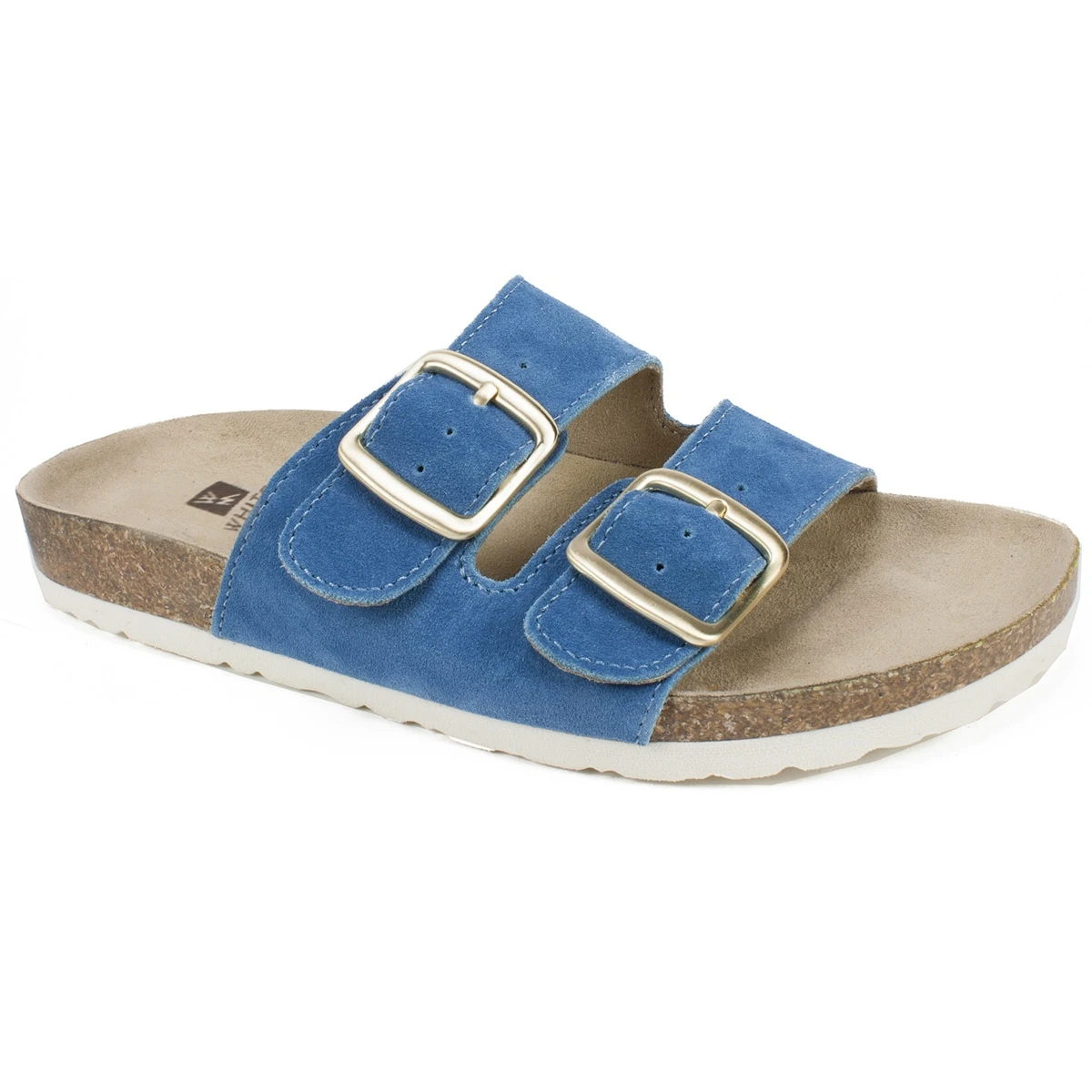 Walk on sunshine with these Womens White Mountain Helga Footbeds™ sandals. The slides have a genuine suede leather upper and a synthetic outsole. These ultimate summer style sandals feature two adjustable buckles and a contoured suedette footbed that provides you ultimate comfort all day every day.