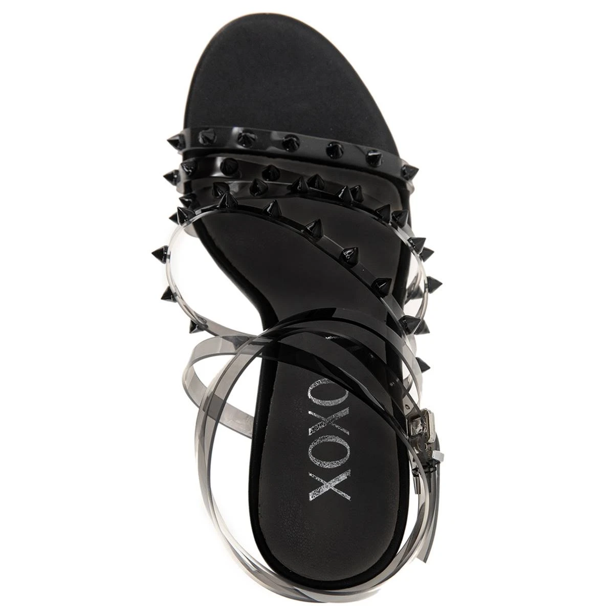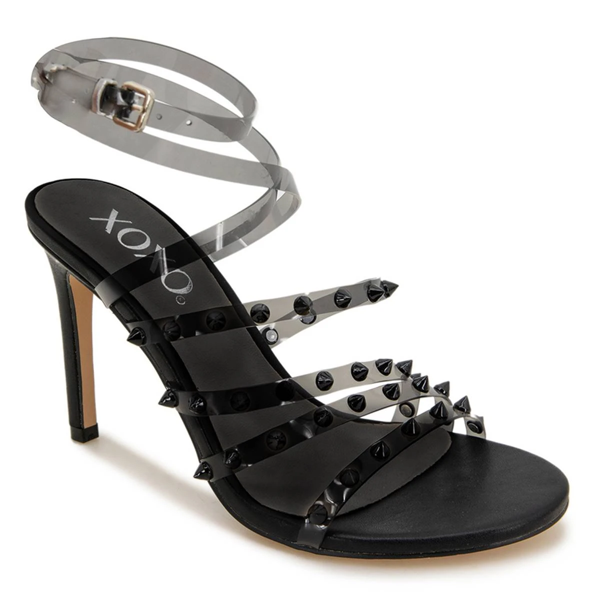 Dress up your outfit with the Womens XOXO Bunni strappy sandals. Featuring Lucite style straps and chic stud accents.