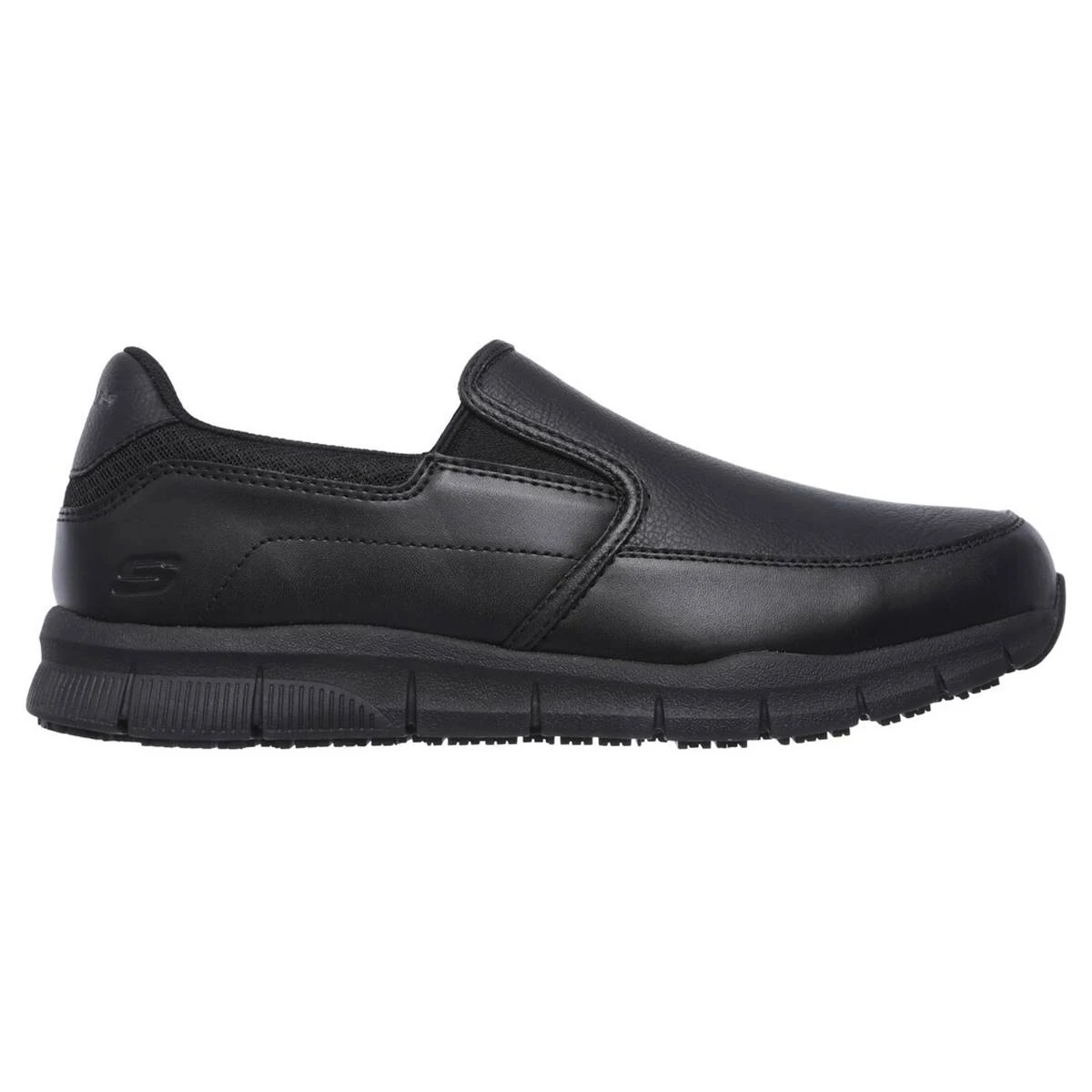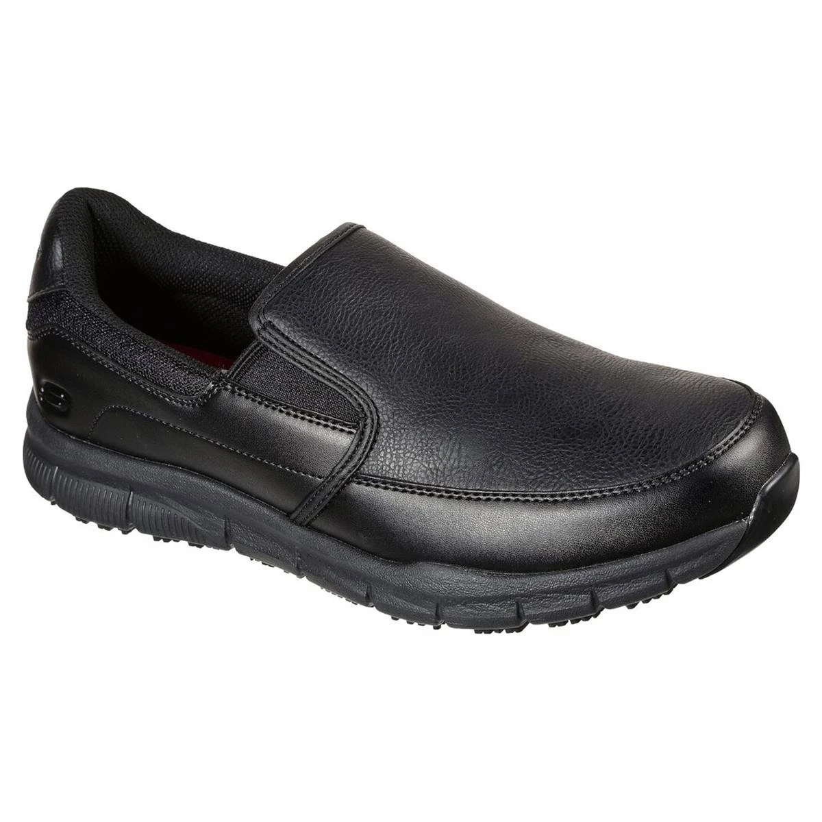 Work smarter and more comfortably with the Mens Skechers Work Relaxed Fit®: Nampa Groton oxfords. This slip-resistant shoe features a slip-on smooth synthetic upper with cushioned memory foam insole and electrical hazard protection.