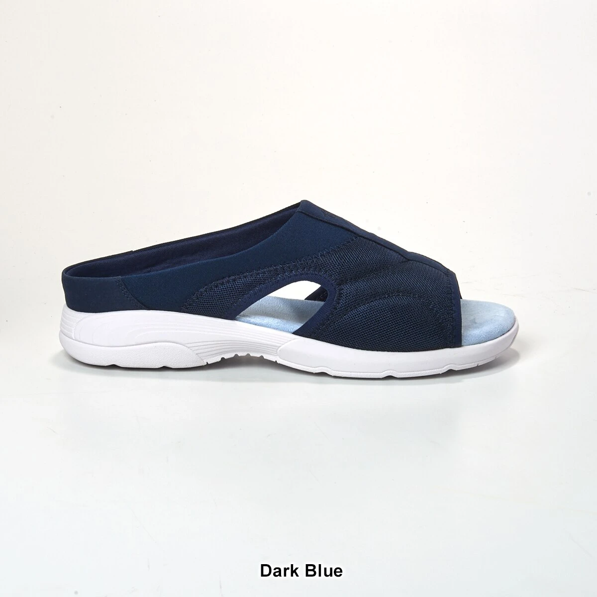 The Womens Easy Spirit Tine2 slide sandals are the true definition of practical comfort. The shoes offer a rounded open-toe with cutout detail at the sides, breathable textile upper, soft cushioned footbed, and full flexibility for that easy wear.
