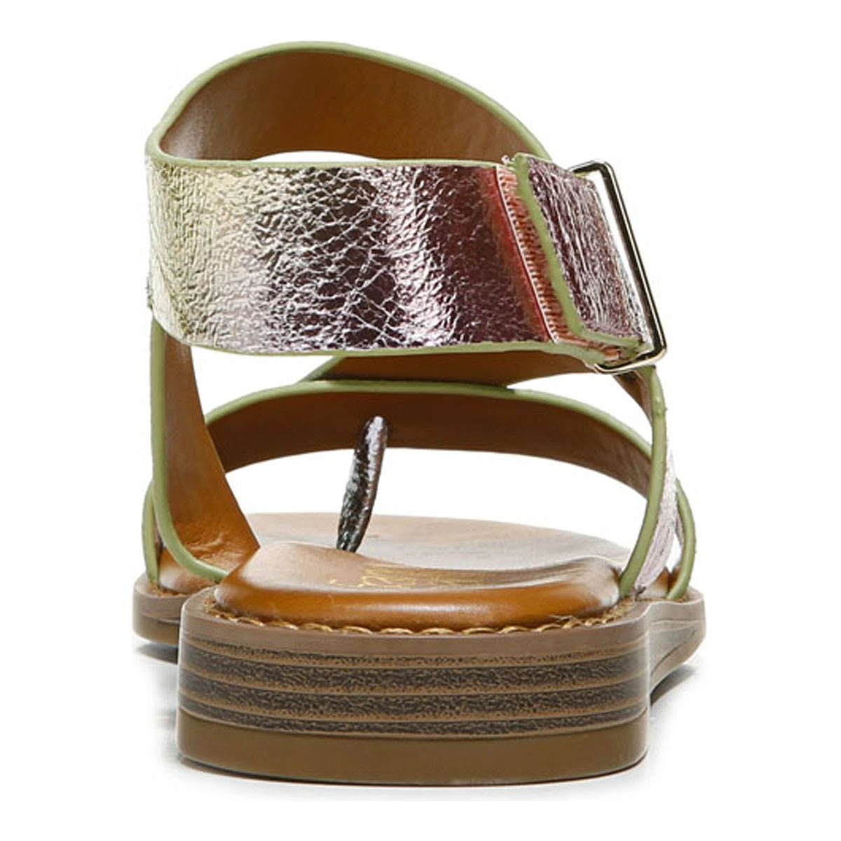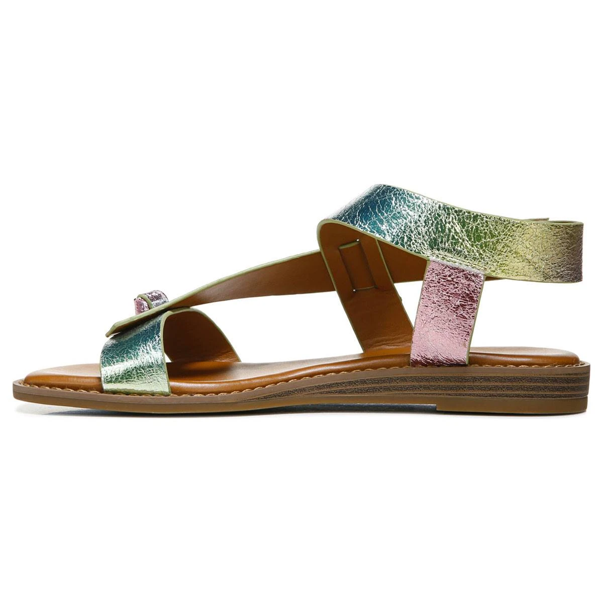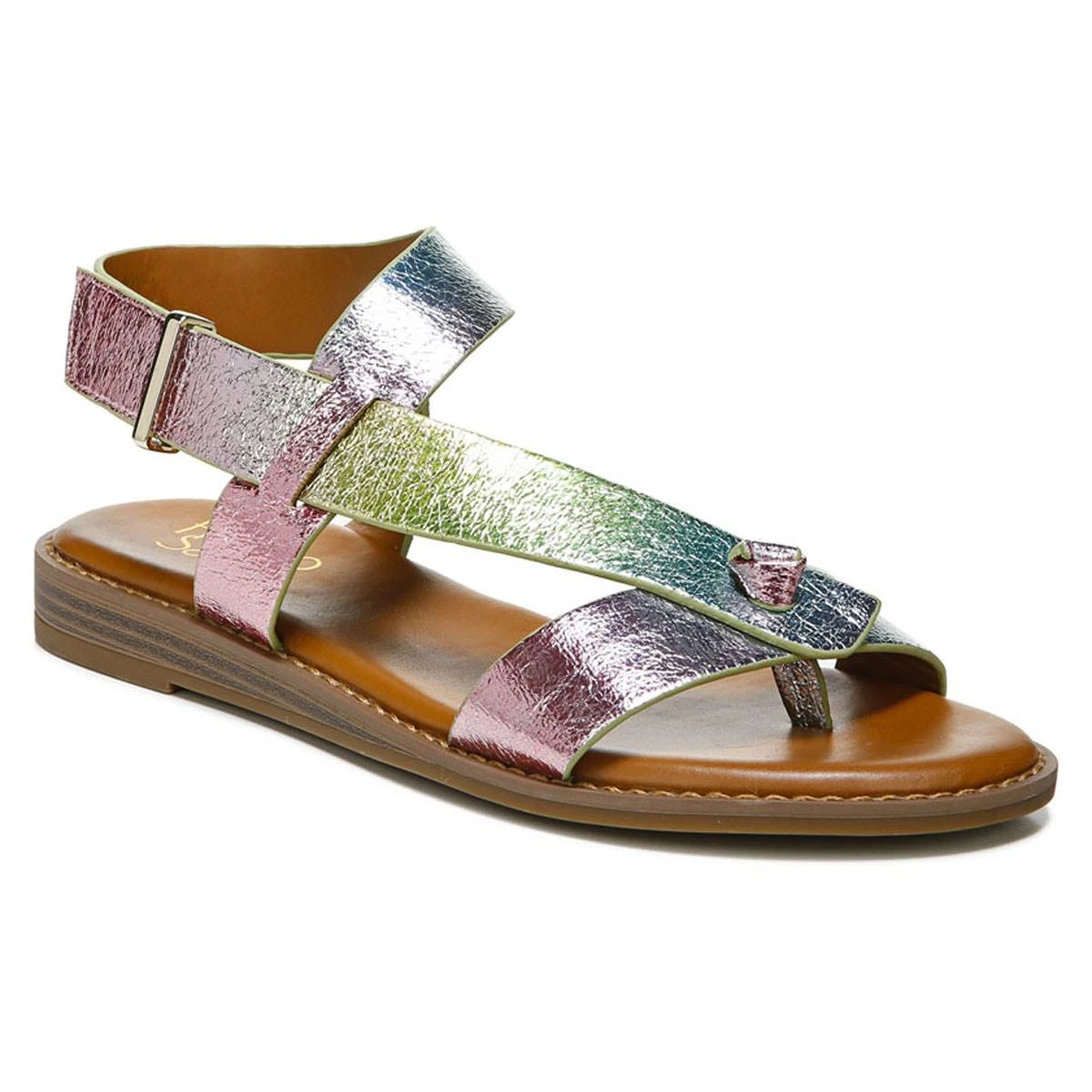 You’re sure to have these Womens Franco Sarto L-Glenni2 iridescent slingback sandals on rotation. They feature and adjustable strap with hook-and-loop closure for a comfortable fit.