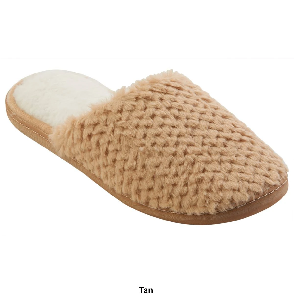 These Womens Gold Toe® embossed faux fur scuff slippers are a soothing shoe style, perfect with your favorite PJs! Featuring warm faux fur to keep your toes extra cozy while you lounge and a rubber sole for durability.