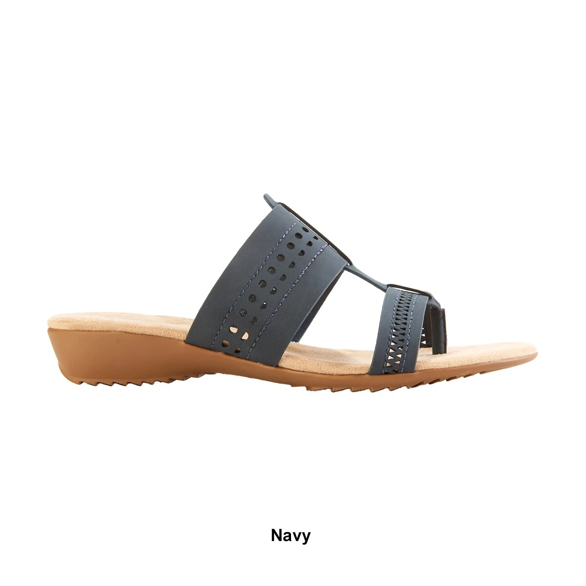 Complete any outfit with these stylish Womens Judith™ Trina tohng sandals. These comfortable shoes include perforated straps, a cushioned footbed, and a low heel.