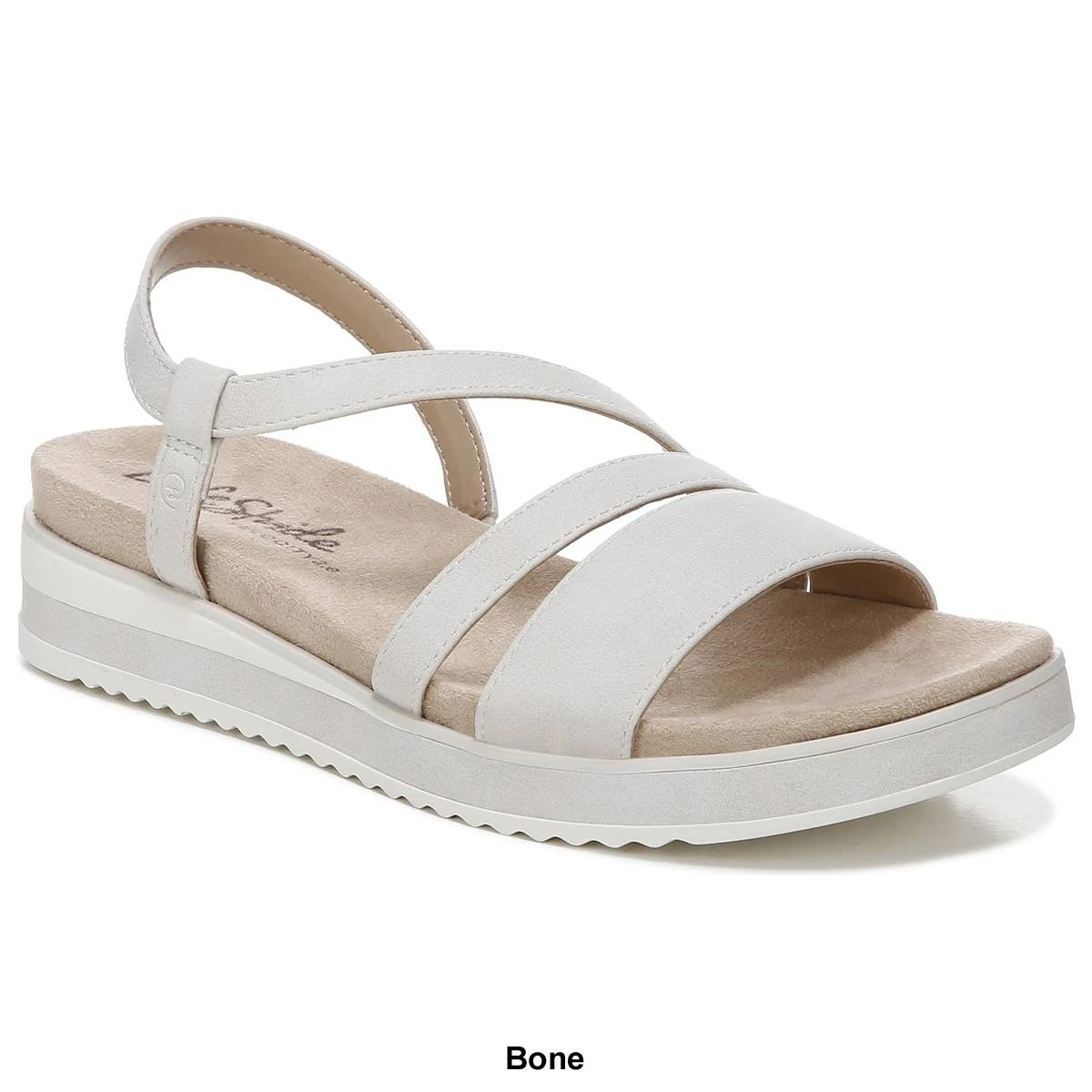 Unbelievably luxe and lightweight, these Womens LifeStride Zoe sport sandals were made to move. Features faux leather upper with a round open toe, inside goring for a flexible fit, and sawtooth outsole. The Soft System® comfort package provides all-day support, flex, and cushioning.Also available in Wide Widths.