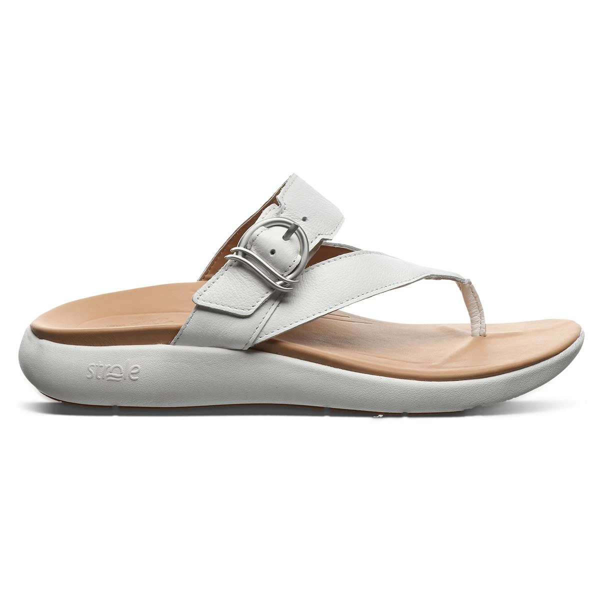 Feel refreshed with every step with these Womens Strole Promenade thong sandals. Features rich uppers, beautiful buckling, and a leather footbed. A great sandal superstar thanks to the impact-reducing, revolutionary SoftStride technology.