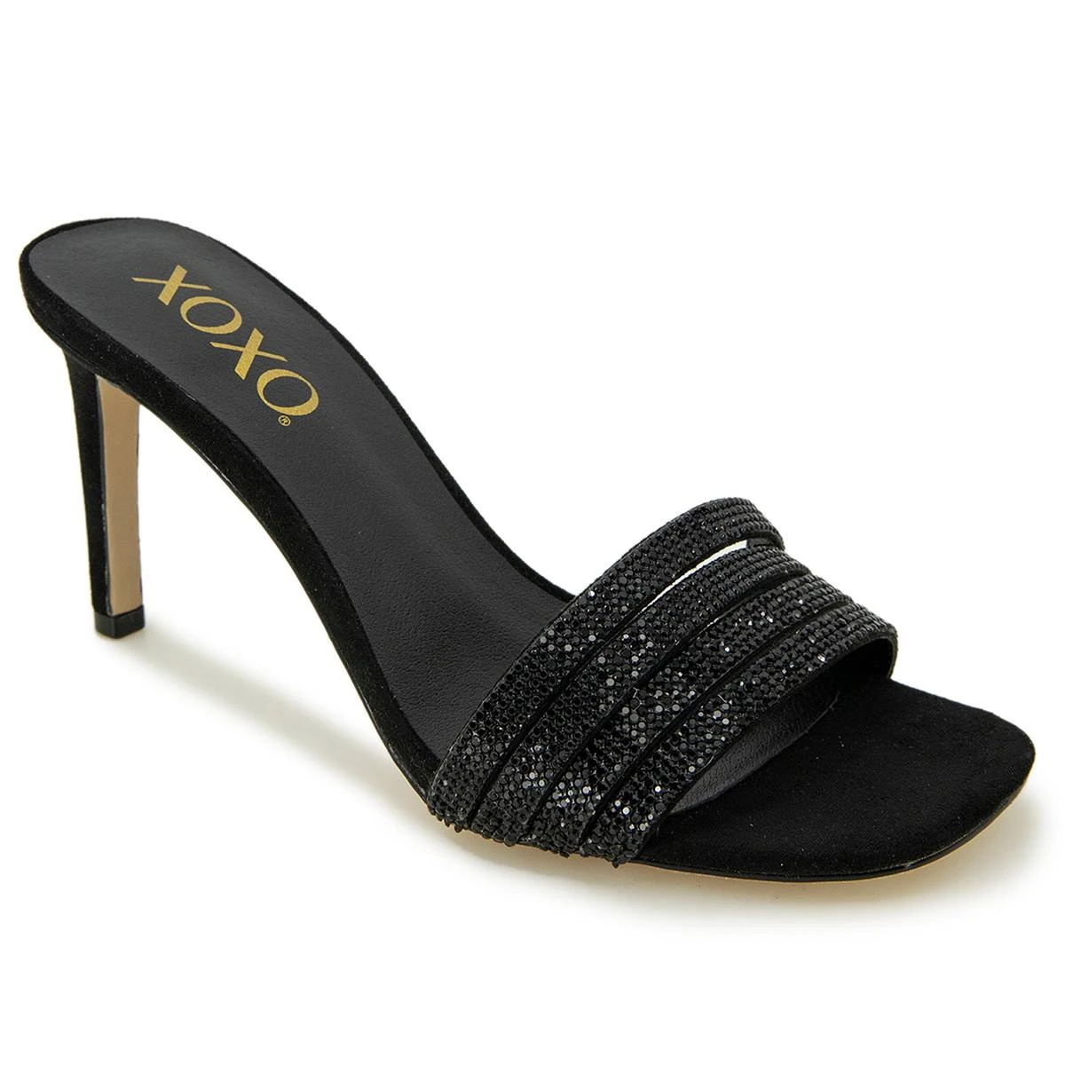 These Womens XOXO Varden slide sandals will give your outfits a chic and cool look. A sophisticated slide with rhinestone details on front.